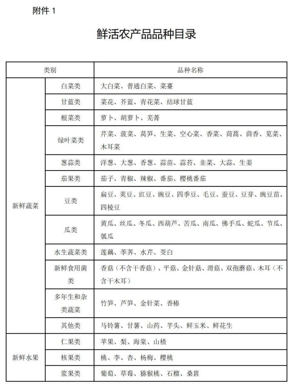 1、鮮活農(nóng)產(chǎn)品品種目錄