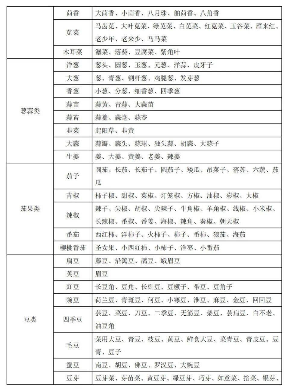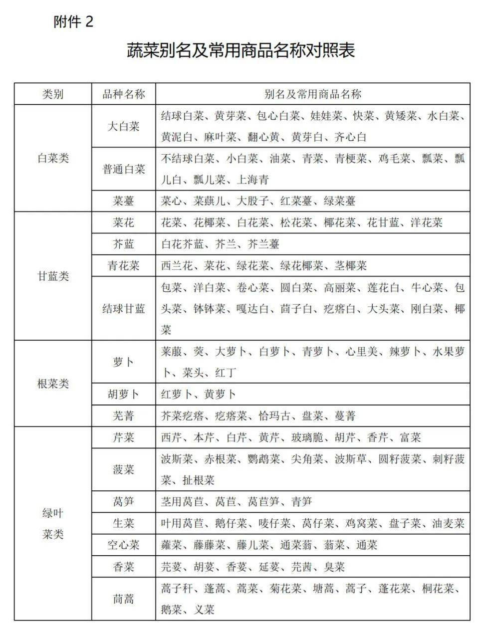 2、蔬菜別名及常用商品名稱對(duì)照表