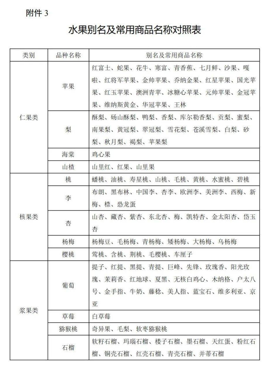 3、水果別名及常用商品名稱對(duì)照表