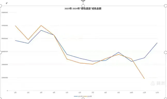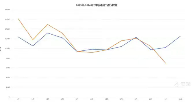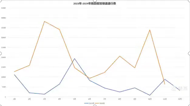 2023 年綠通數(shù)量共 132222 輛,免費(fèi)金額 375834942.22 元。2024年截至 11 月 20 日,綠通數(shù)量共 125346 輛,免費(fèi)金額 333207518.57元。數(shù)據(jù)按月度展開如圖: