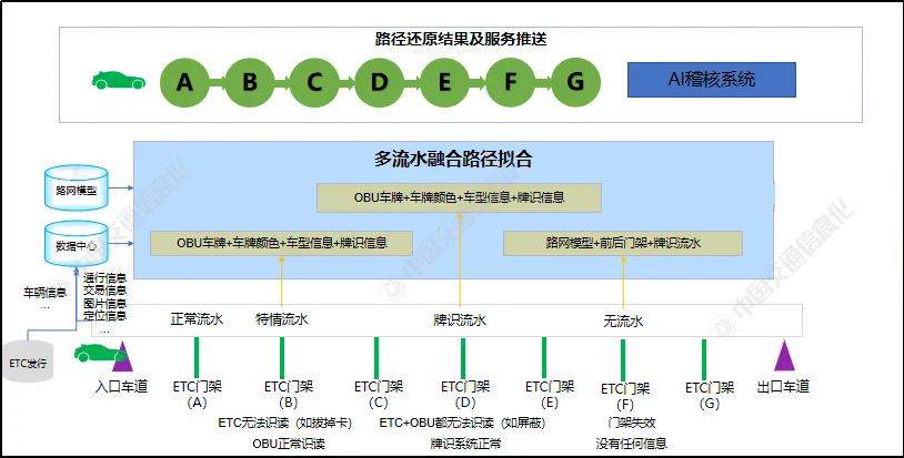摘要:隨著省界收費(fèi)站全部取消,全國(guó)實(shí)現(xiàn)了“收費(fèi)一張網(wǎng)”,極大地提升了高速公路路網(wǎng)通行效率,然而在經(jīng)濟(jì)利益的驅(qū)使下,偷逃通行費(fèi)行為層出不窮并呈現(xiàn)出多樣化、隱蔽化特點(diǎn)。傳統(tǒng)稽核方法存在依賴人工、遏制難度大、運(yùn)營(yíng)服務(wù)能力不足等問(wèn)題,無(wú)法滿足新收費(fèi)模式下的稽核需求。本文基于大數(shù)據(jù)、邊緣計(jì)算、AI算法等技術(shù),對(duì)AI稽核系統(tǒng)平臺(tái)建設(shè)進(jìn)行了探討,提出了多流水融合路徑還原、邊緣計(jì)算實(shí)時(shí)稽查、多維AI稽核引擎等方法,并建立了多種偷逃費(fèi)稽核模型。結(jié)果表明,AI稽核系統(tǒng)可有效核查多種偷逃費(fèi)行為,模型準(zhǔn)確率高,能夠滿足核查需求。