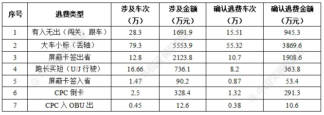 分析可得,有入無(wú)出(闖關(guān)、跟車)、大車小標(biāo)(丟軸)、屏蔽卡簽出省和跑長(zhǎng)買短(U/J行駛)等4種逃費(fèi)類型分別占據(jù)涉及行程數(shù)的96.87%、疑似損失金額的95.9%,是稽核系統(tǒng)需加大核查力度的逃費(fèi)類型,特別是屏蔽卡簽逃費(fèi)車次占為11%,逃費(fèi)金額占比卻達(dá)25%,以全網(wǎng)聯(lián)網(wǎng)收費(fèi)運(yùn)行模式下出現(xiàn)的新型逃費(fèi)類型,需要從技術(shù)、管理等多方面加強(qiáng)管理。有入無(wú)出(闖關(guān)、跟車)和跑長(zhǎng)買短(U/J行駛)2類逃費(fèi)類型確認(rèn)逃費(fèi)金額占比有所下降,直接原因是稽核模型準(zhǔn)確率不高。下一步應(yīng)持續(xù)優(yōu)化迭代這2類模型,盡可能提高其準(zhǔn)確率,從而不斷提高可追繳比例。